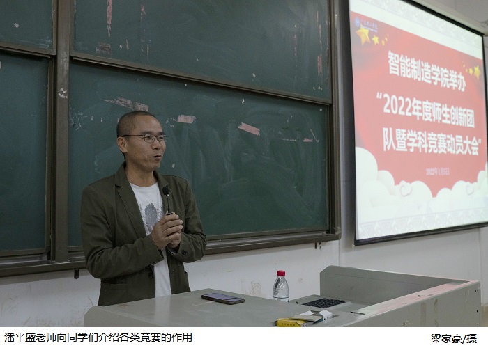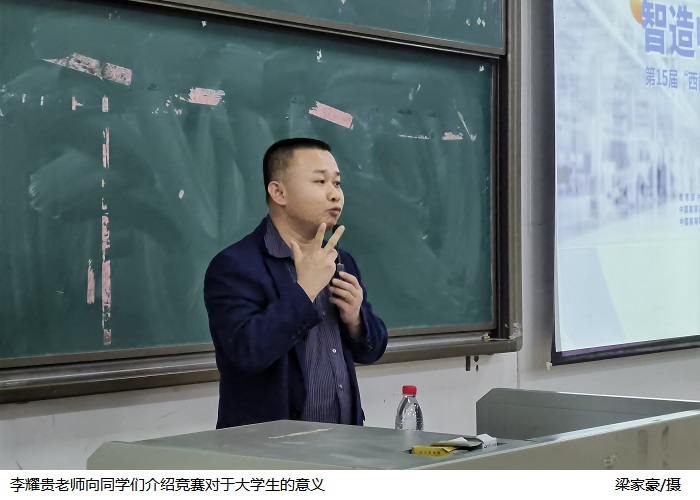 指导教师潘平盛老师向同学们介绍了大学期间多参加学科相关竞赛的重要意义,他表示当理论知识停留书本的时候,你与其他人之间的差距并不大,但理论知识进入实践时,你才能正视自己的长处和缺点,并能不断获得更好的提升。同时,庞小兰老师、李耀贵老师、谢江怀老师、黄永程老师、朱伟枝老师以及潘云峰老师分别以各类型竞赛为例,向同学们生动形象的介绍了竞赛类型、竞赛要求、竞赛内容等,这些干货的分享,相信让在场的同学们都受益良多。