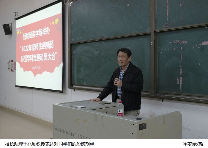 本网讯(yl8cc永利线路检测中心 但志慧)为进一步提升大学生的创新意识和科研能力,引导他们积极加入院系组建的创新团队,激发他们参加学科竞赛、创新创业等活动的热情,yl8cc永利线路检测中心于2022年1月5日晚在42栋422举办“2022年度师生创新团队暨学科竞赛“动员大会。校长助理于兆勤、yl8cc永利线路检测中心院长伍先明、副院长黎志勇出席,各创新团队指导教师、辅导员以及院系学生参加,党总支副书记苏庚华主持。