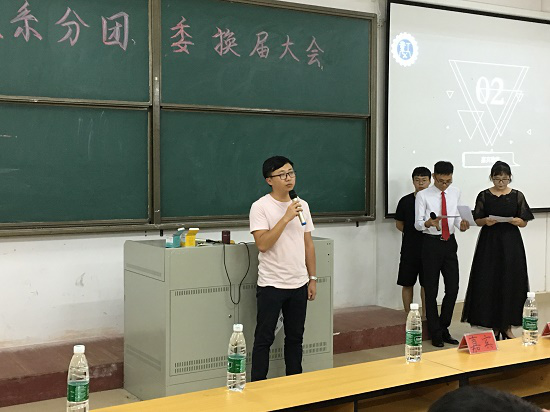 紧接着就是分团委主席陈广森宣布新任干事名单和李晨昊书记为各部门干部及主席团成员颁发聘书。最后就是系旗的交接和新任副书记徐嘉乐发言。