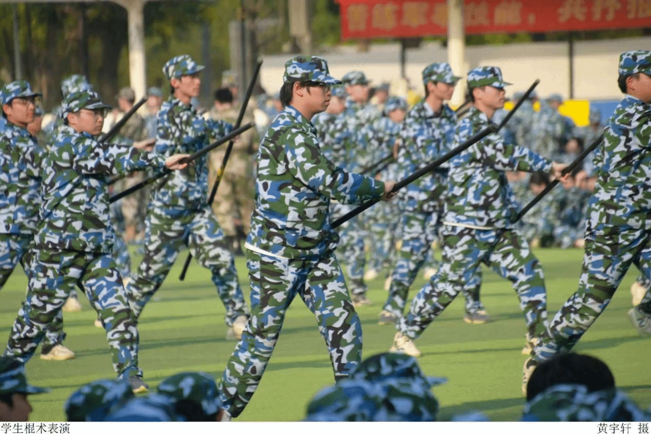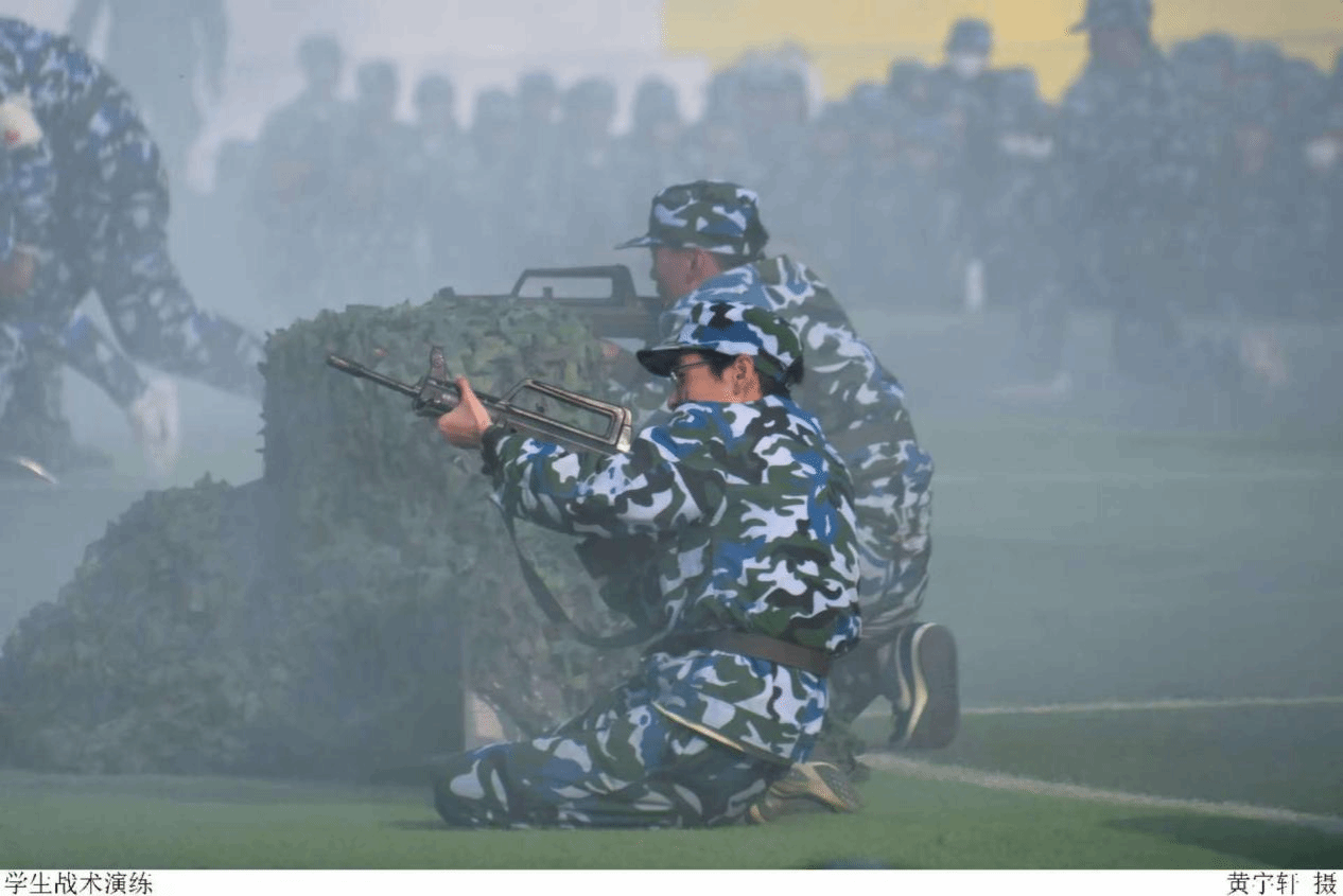 升旗仪式过后是方队表演展示,各团代表组成的军训方阵昂首阔步地走来,眼神坚定,步伐有力。每一次整齐划一的动作,都凝聚着教官们的辛勤付出与学生们的不懈努力。军体拳表演刚劲有力,擒敌拳表演气势磅礴,匕首操表演英姿飒爽,少年们的一招一式都流露出刚强与自信。战术综合演练更是扣人心弦,参演学员们身形矫健、做战术动作时标准且快速,通过表演“董存瑞炸碉堡”的历史故事,展现了作为军人应有的团结协作、甘于奉献的精神。