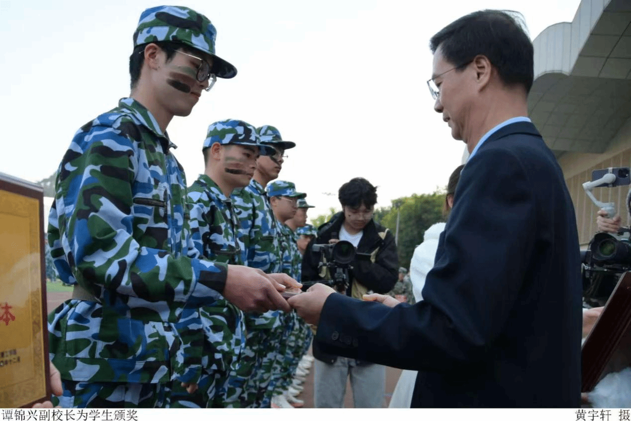 随后,表彰环节将气氛推向了高潮,由谭锦兴副校长宣读表彰决定。一批在军训中表现优异的个人和集体脱颖而出,他们手捧荣誉证书,脸上洋溢着自豪的笑容。这份荣誉不仅是对他们过去努力的认可,更是对全体同学的激励,激励大家在未来的道路上奋勇争先。我院也在优秀教官、先进个人、先进集体、征兵工作先进单位、征兵工作先进集体等多方面斩获表彰荣誉。