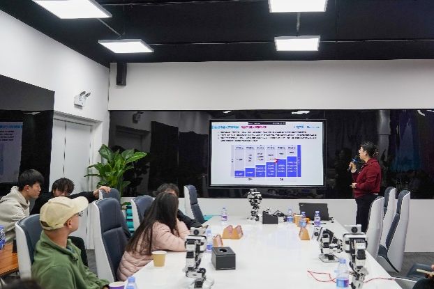 活动期间,优必选的高级培训经理黄鹤和高级运营经理杨小彬分别为师生们带来了精彩的讲座。黄鹤的《走在AGI路上的智能机器人》讲座深入讲解了通用人工智能(AGI)的概念、核心技术和应用场景,展示了智能机器人在AGI驱动下的自主学习、推理、决策和创新能力。杨小彬则通过《智能机器人产业发展及人才需求》专题讲座,详细解读了智能机器人产业的发展态势和人才需求,为学生们提供了明确的职业规划指导。