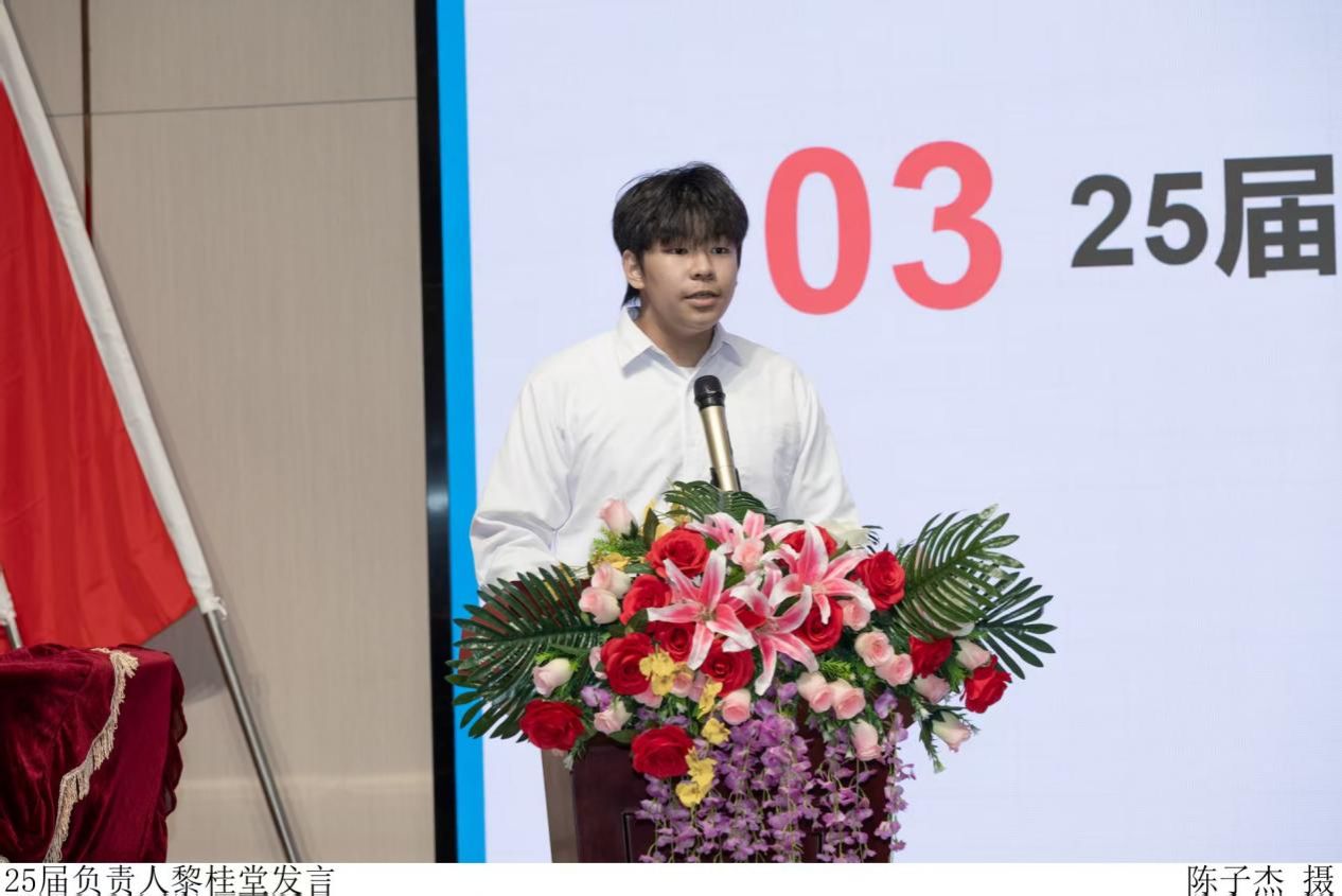 而后,由新任组织负责人黎桂堂进行发言。他首先感谢学院领导、老师和同学们的信任与支持,并郑重承诺,将带领新一届团队积极进取,以饱满的热情、严谨的态度投入到工作中,表示日后将立足同学需求,积极策划更有意义的活动,努力为学院发展贡献力量,展现新时代学生干部的责任与担当。