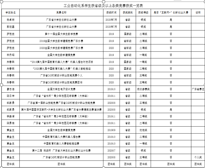 工业自动化系学生获省级及以上各类竞赛获奖一览表