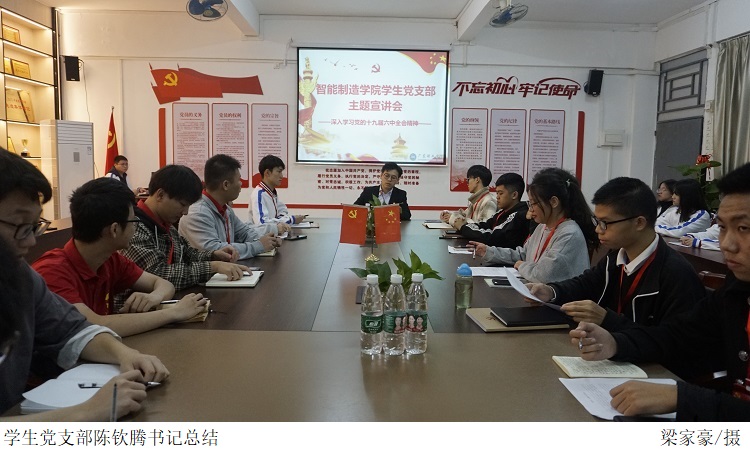会议最后,陈钦腾书记对本次会议做出总结,他强调:我们正处于中国特色社会主义的新时代,一定要坚持党的领导,紧跟党的步伐。并借此向同学们提出建议,不仅要认真学习党的十九届六中全会精神,还要将全会精神内化于心,外践于行,做一个德智体美全面发展的大学生。