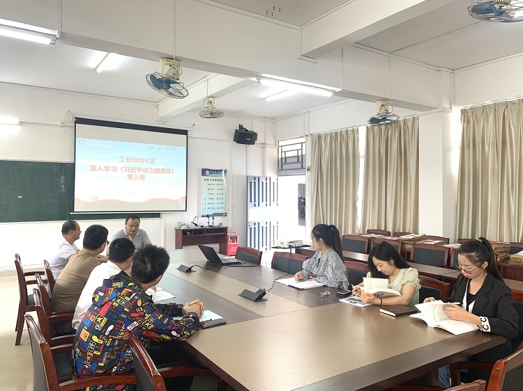 本网讯(工业系)11月2日上午,工业系党总支在9304会议室,深入学习《习近平谈治国理政》第三卷。工业系党总支苏庚华副书记、教工党支部杨斌书记和党员教工共同学习。
