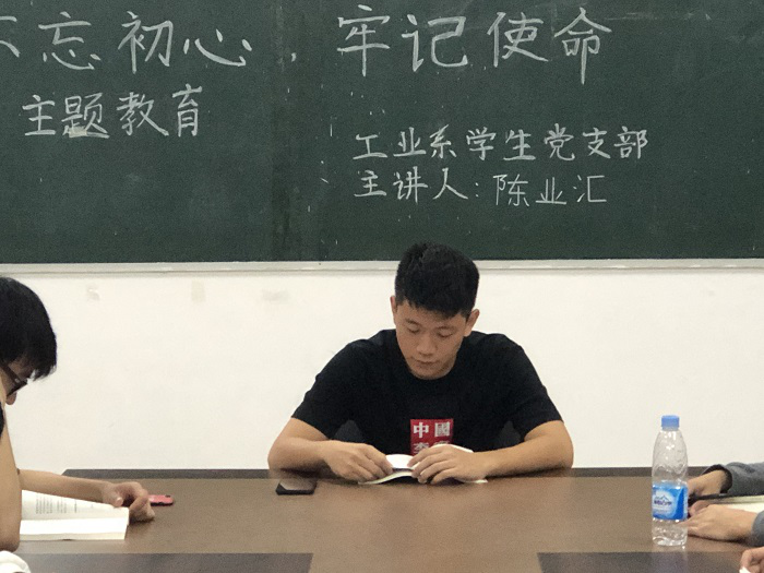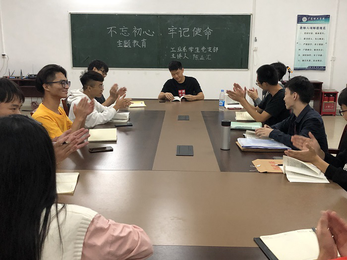 本网讯(工业系新闻中心)为坚定共产党员人的理想信念,11月5日晚8点,工业系于党员活动中心9304开展“不忘初心,牢记使命”主题教育学习会。本次会议由预备党员陈业汇主讲并分享心得体会,全体学生党员参加了会议。