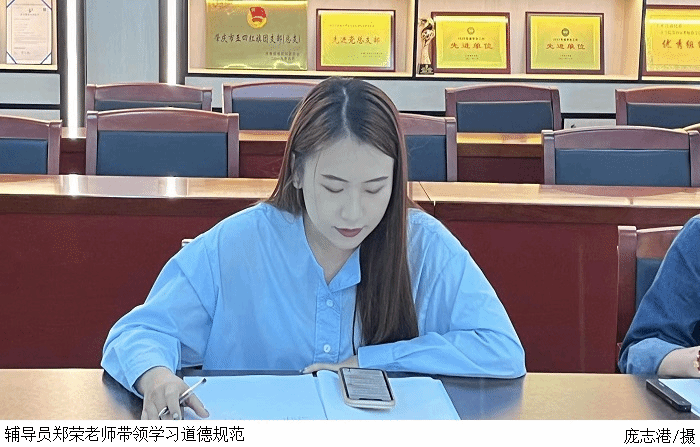 会上,辅导员郑荣老师领学《高校教师职业道德规范》和“红七条”师德禁行行为,全体辅导员重温高校辅导员誓词并共同签署师德承诺书。